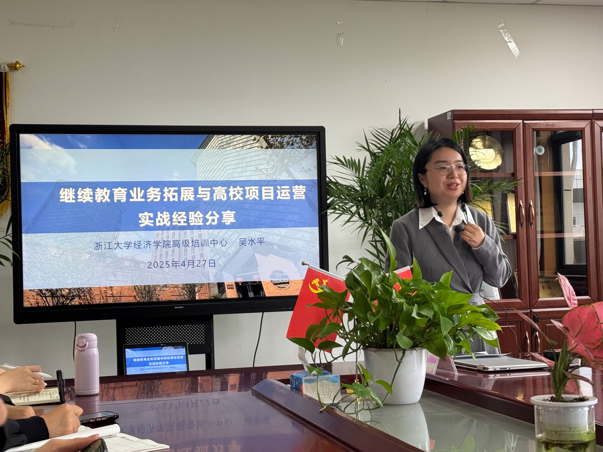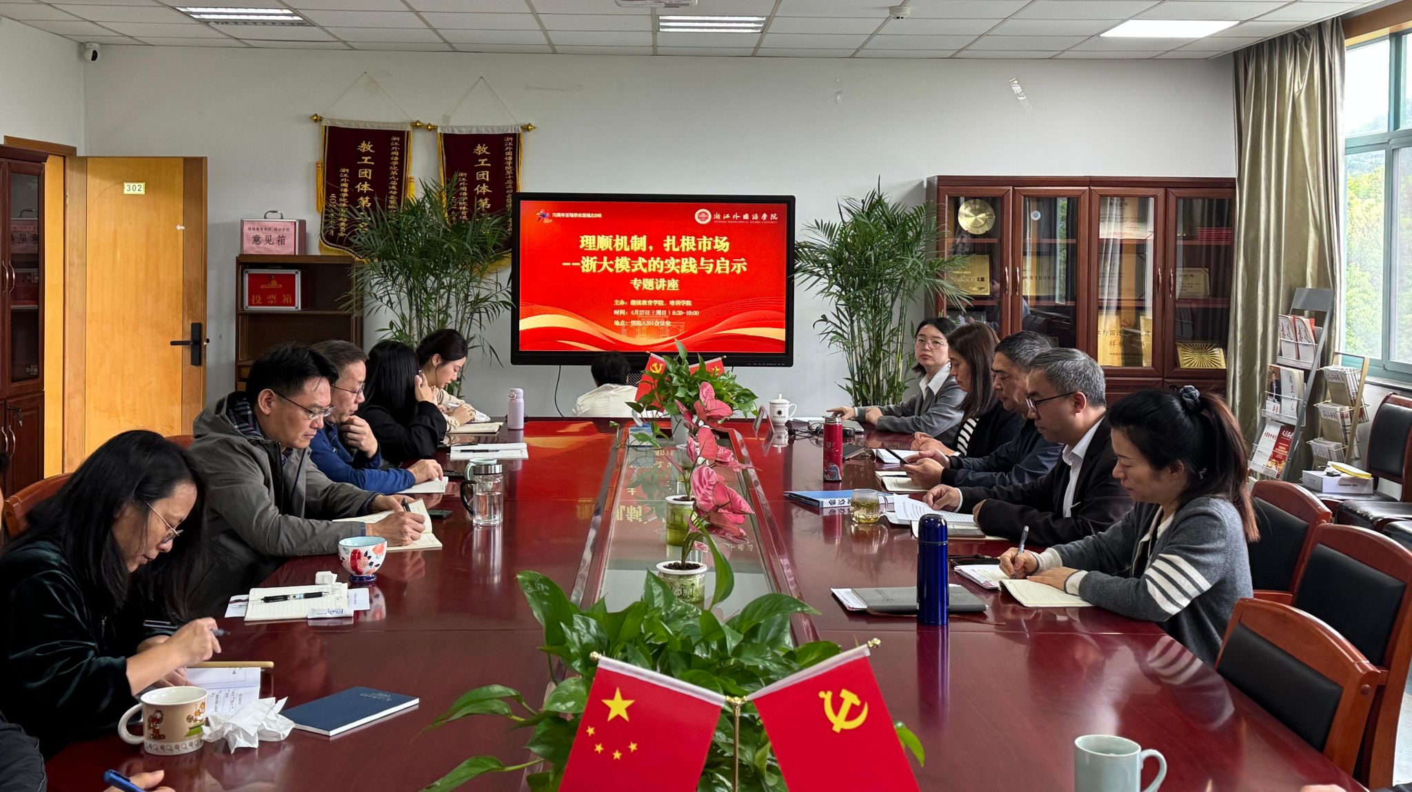 师道相承七十载,立德树人续华章。为迎接校庆七十周年,深化学习型党组织建设,深入探讨培训行业在数字化浪潮及多元化需求背景下的发展路径,助力学院培训工作突破瓶颈,4月27日上午,学院举办了“迎校庆、树品牌、促业务”主题讲座。本期讲座特邀浙江大学经济学院资深培训专家、党支部书记吴水平担任主讲,具体围绕“理顺机制,扎根市场——浙大模式的实践与启示”这一中心内容开讲。本次讲座由学院党总支书记、副院长周明宝主持,学院全体教职工参加。