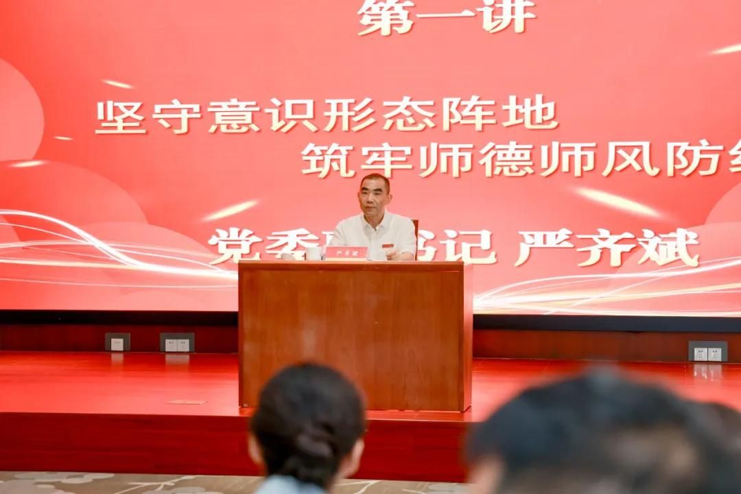 校党委副书记严齐斌紧密结合高校特点,深入剖析了意识形态领域面临的潜在风险与挑战,通过真实案例警示大家必须时刻绷紧思想之弦,牢固树立“阵地意识”和“红线意识”。他强调,师德师风是评价教师队伍素质的第一标准,坚守意识形态阵地最终要落脚到每位教师的日常言行与职业操守上。