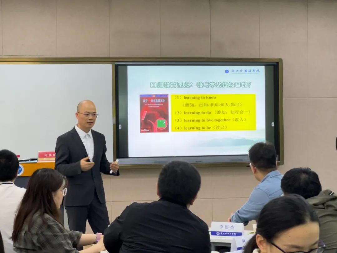 党委教师工作部部长、人事处处长何伟强教授带来题为《渡知·渡人·渡己:教师的三重角色与使命》讲座。与新教师共同探讨了教师的角色使命、教育的现实窘境以及教师的生命自觉。通过自己的行动案例勉励新教师们点亮自己、温暖他人,自觉觉人、觉人自觉。