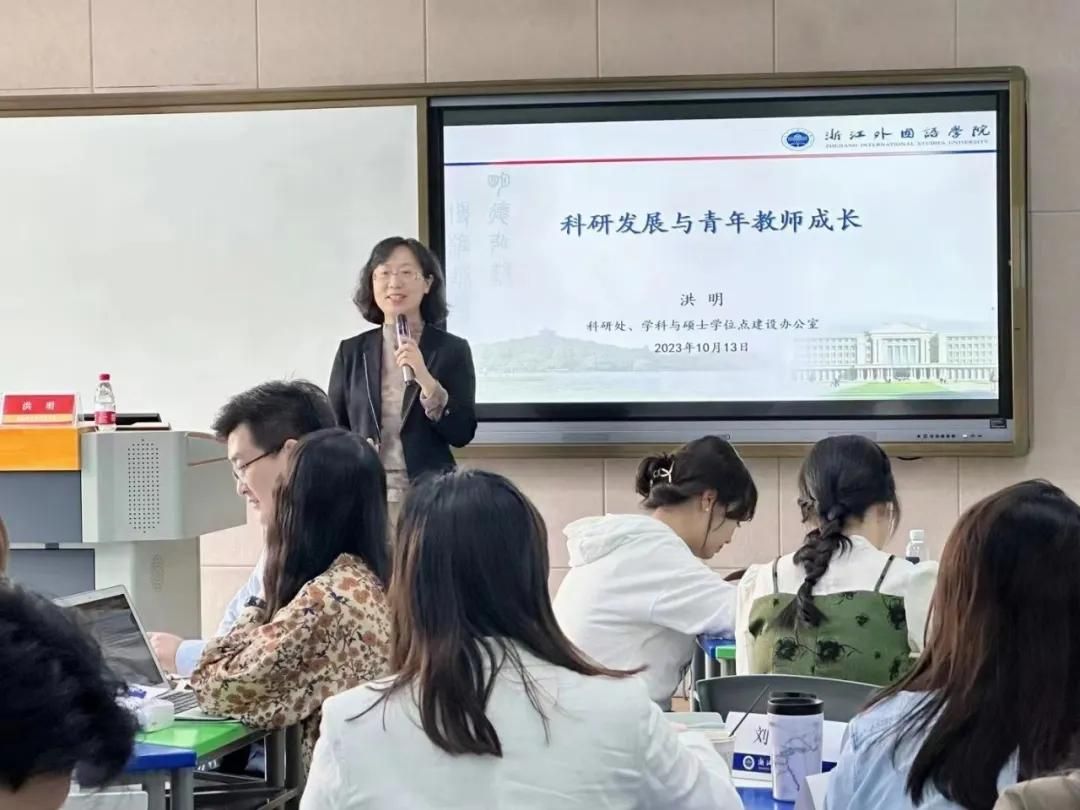 科研处处长、 学科与硕士学位点建设办公室主任洪明教授的讲座帮助新教师深刻了解学科建设及团队建设的重要性。强调新教师要紧紧围绕学校“三地四域”发展,主动对接社会需求,为推进学校学科建设和智囊高地建设作出努力。