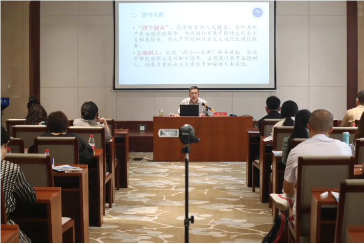 校党委副书记曹仁清教授为新教师带来题为《立德树人是中国特色社会主义高等教育的立身之本》的专题讲座。曹书记对学校的办学历史、建设目标、发展定位进行深刻解读,详细地阐释了立德树人的内涵、落实立德树人根本任务的重要性,以及浙外实践。他强调,作为一名教师,要做到明大德、守公德、严私德,惟有三者相辅相成、水乳交融,立德树人的根本任务才能得到根本落实。要对党忠诚,践行社会主义核心价值观,做一名“四有”教师,做学生锤炼品格的引路人、学生学习知识的引路人、学生创新思维的引路人和学生奉献祖国的引路人。