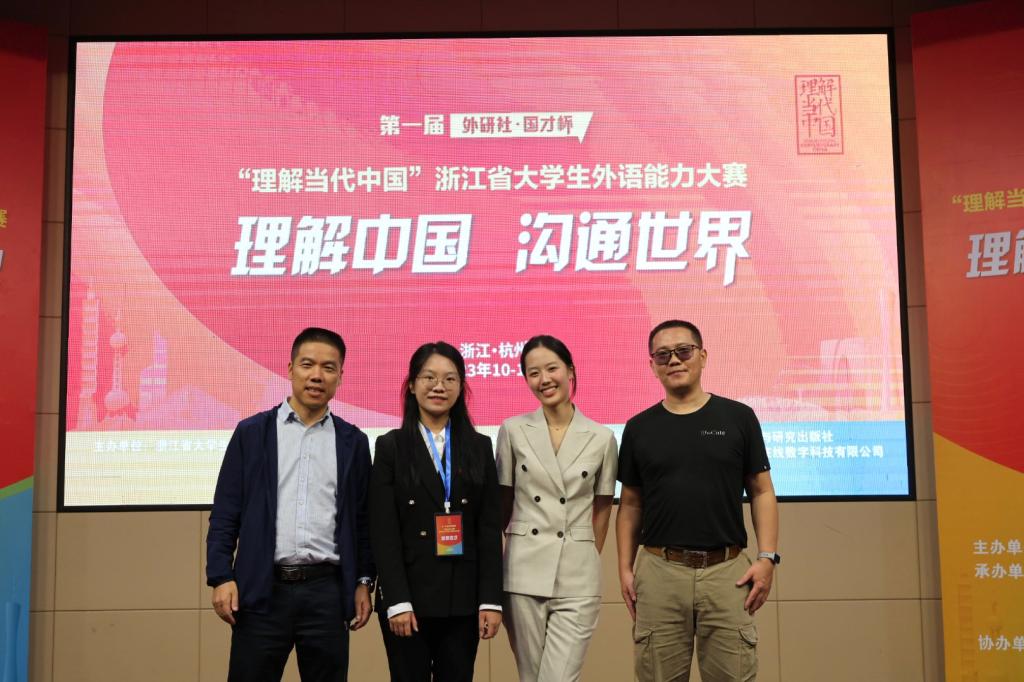 据悉,本届大赛由浙江省大学生科技竞赛委员会主办,浙江省高等学校大学外语教学指导委员会、浙江省高等教育学会大学外语分会、浙江大学承办,外语教学与研究出版社、北京外研在线数字科技有限公司协办。大赛以“推动‘三进’工作、创新课程思政;深化教育改革、培育外语人才”为宗旨,旨在培养更多能用外语讲好中国故事、传播好中国声音的高素质外语人才,助力国家国际传播能力建设。